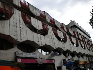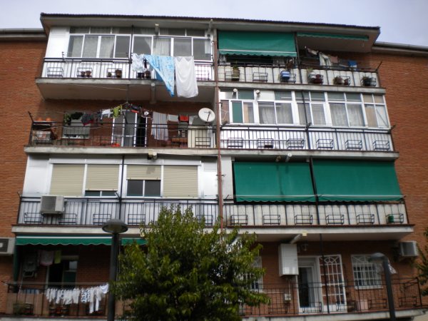 A David y a mí nos sorprende que tanto Madrid como el cinturón estén plagados de edificios costeros. No sé si ésta es una percepción de los que nos hemos criado junto al mar, ni si los madrileños comentan lo raro que es toparse con edificios como los de Leganés cuando se pasean por Gandía o por Benalmádena. La primera vez que tuve la impresión de estar en Torremolinos en lugar de en Madrid fue yendo al edificio de Santillana (este fenómeno sólo ocurre tras atravesar la M-30). Desde el metro hay que subir una cuesta en la que construcciones feas, inmensas y rodeadas de jardines sugieren que el Mediterráneo está a la vuelta de la esquina. He aquí un ejemplo más modesto, como corresponde a Leganés: