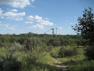 Benedetta también es arquitecta, y ha venido a Madrid con Esther a pasar unos días. Decidimos ir a la Casa de Campo, que antes formaba parte de todas la visitas guiadas a la ciudad, y que se ha quedado fuera del circuito turístico. El funicular ya no es aquella novedad para catetillos, el zoo deprime y la urbe se ha vuelto muy interesante y no te deja. Desde arriba vemos unas colonias por la Florida que forman parte de mis futuras visitas, según Esther, y ya en la Casa de Campo resolvemos volver andando, con el zumbido de las atracciones y sus gritos detrás, los pájaros tropicales que deben de haberse escapado de las jaulas, las chicharras, los tránsitos extraños de un paisaje de dehesa a otro más boscoso, y de ahí al páramo y después jardines (yo siempre he caminado en sentido inverso, recorriendo unos caminos plagados de trincheras a los que ya no sé ir, y también siguiendo algunas de las carreteras donde se ponen las putas). Centenares de latinos bebían y comían y chillaban en una explanada, o tal vez eran campos de fútbol. Una cosa buena que ha hecho el Ayuntamiento es enterrar la M-30, que funciona como un muro. Querido Gallardón, flipé cuando pude salir de la Casa de Campo a Príncipe Pío.