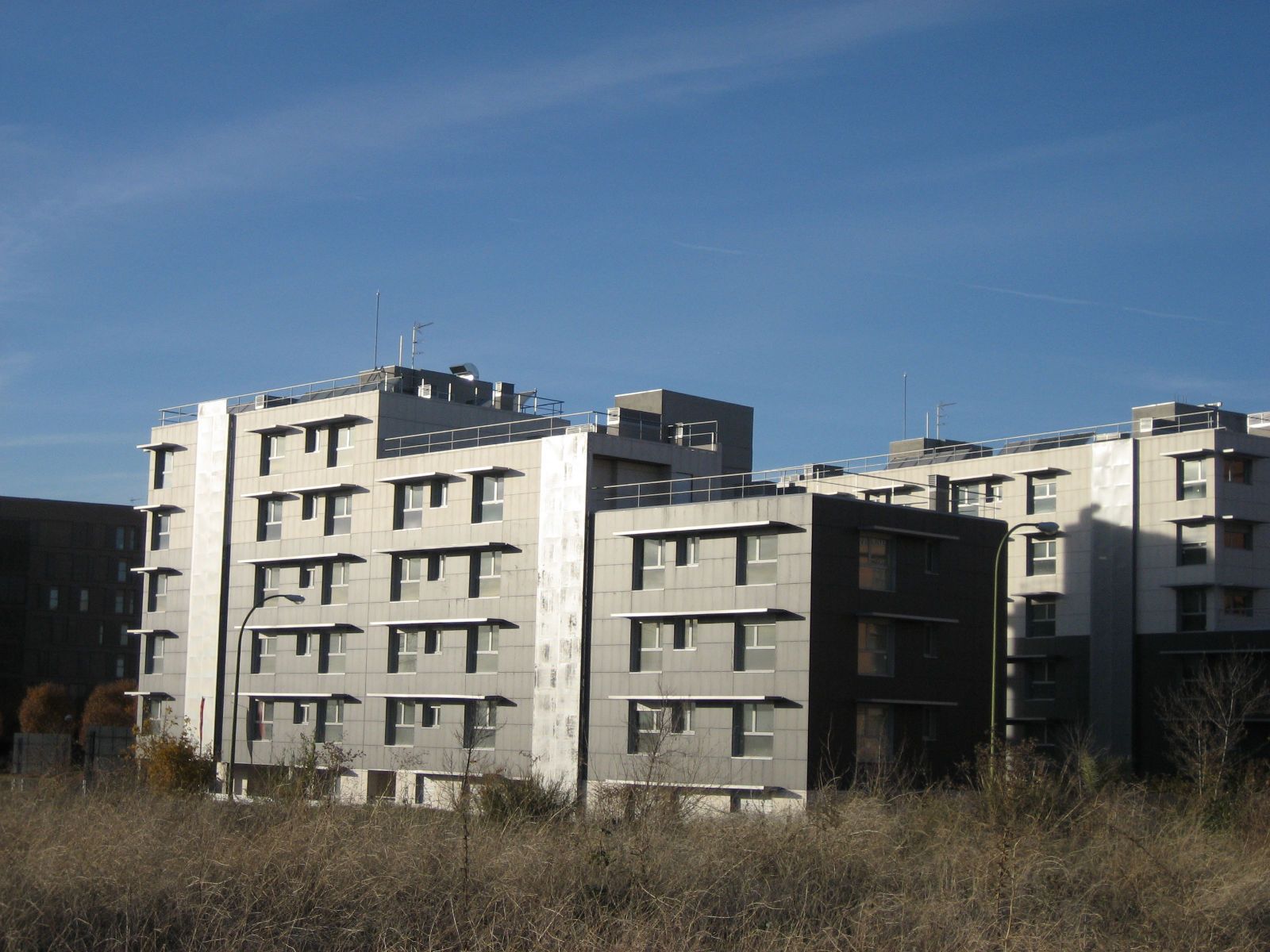 * (Me chiva un anónimo que el edificio de colorines lo han diseñado unos arquitectos de 50 años: "Los arquitectos, profesores de la Escuela de Arquitectura de Madrid, forman el estudio Temperaturas Extremas. Aqui tienes información sobre su edad: http://www.amann-canovas-maruri.es/cv.html