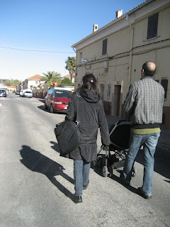 Esther es la que lleva la cámara y la que ha hecho todas las fotos de este post (gracias, Esther). Yo voy delante con Manolo y Nicolás, que duerme tan pancho en su carrito:
