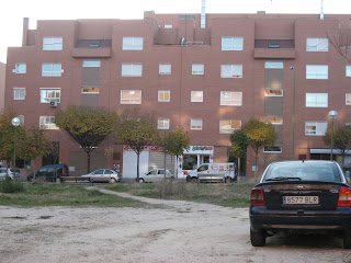 El barrio alterna este tipo de eficio de ¿material tecnológico? con otros ladrillistas que tampoco pintan mal. Los árboles de los parques están recortaditos, y hay solares como el que describe Vicenç Pagès Jordà en Los jugadores de whist.