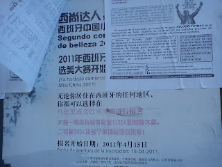 La parte de Usera que A. me enseña, Almedrales, cuenta con todos estos elementos: alguna casita baja ocupada, losas que parecen del baño en las fachadas, ladrillismo VPO, animales que sólo pueden asomar la cabeza entre los alambres, lomas coronadas por la promesa del horizonte. También cuenta con parte de lo que yo tenía asociado a Usera, ser el Chinatown de los barrios (el del centro está entre el Mercado de los Mostenses y Leganitos). Con Esther, allá por el 2003, me asomé a los videoclubs chinos, y a alguna que otra peluquería oriental. Tal vez había boutiques con trajes de novia de color azul. Asia asomaba la patita. Hoy, en la calle Dolores Barranco y aledaños, ya tiene medio cuerpo fuera. A. me dice que son capitalistas sin complejos, y que se pasean en ¿Mercedes, Bemeuves? negros (lo siento, A.; jamás recuerdo las marcas de coches). En general, tengo poca memoria, y mejor que suelte cuanto antes lo que él me dijo, así al mogollón: no le gustan las plazas porque en ellas se junta lo más granado de lo peor, y en "lo peor" debemos incluir los asesinatos; el increíble chino de la calle La Pilarica, que empezó con una tienda de alimentación, siguió con un Todo a Cien y culminó con un súper de fruta y verdura cuya estética es similar a los Piedra de Córdoba; las emboscadas de la policía, también en La Pilarica; el mesón gallego A'Barca, que tiene retratos de Franco y botellas de vino con el careto de José Antonio, y que pertenece a un tipo de El Ferrol que se dedica a hacer viajes y a fotografiarse con famosos o en situaciones exóticas (?).