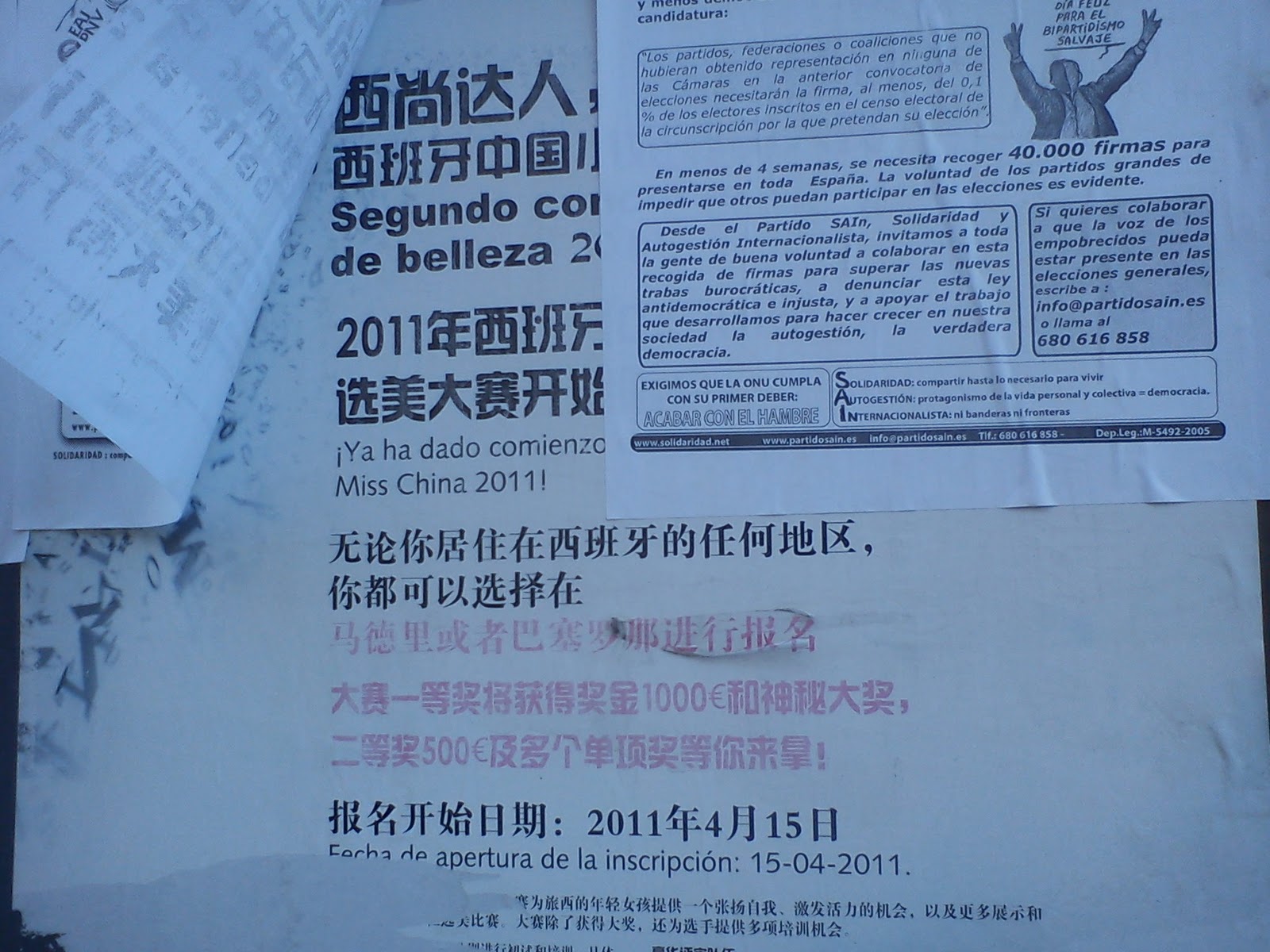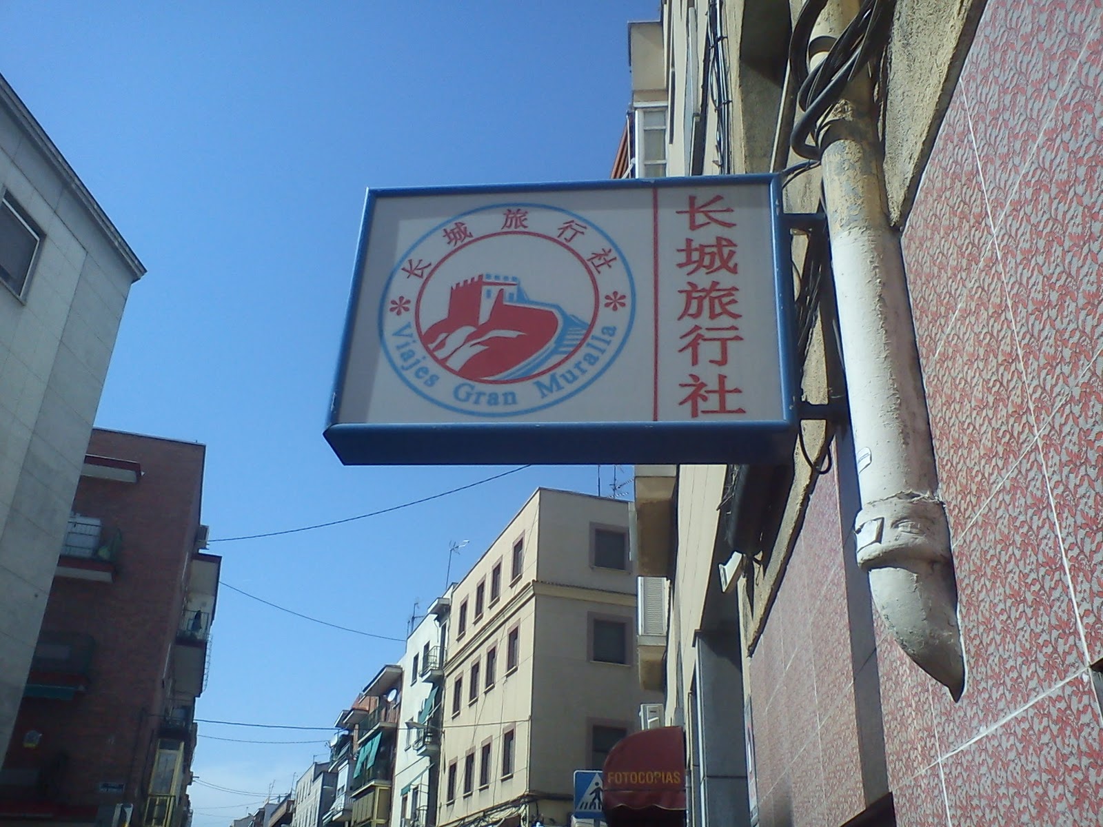 La parte de Usera que A. me enseña, Almedrales, cuenta con todos estos elementos: alguna casita baja ocupada, losas que parecen del baño en las fachadas, ladrillismo VPO, animales que sólo pueden asomar la cabeza entre los alambres, lomas coronadas por la promesa del horizonte. También cuenta con parte de lo que yo tenía asociado a Usera, ser el Chinatown de los barrios (el del centro está entre el Mercado de los Mostenses y Leganitos). Con Esther, allá por el 2003, me asomé a los videoclubs chinos, y a alguna que otra peluquería oriental. Tal vez había boutiques con trajes de novia de color azul. Asia asomaba la patita. Hoy, en la calle Dolores Barranco y aledaños, ya tiene medio cuerpo fuera. A. me dice que son capitalistas sin complejos, y que se pasean en ¿Mercedes, Bemeuves? negros (lo siento, A.; jamás recuerdo las marcas de coches). En general, tengo poca memoria, y mejor que suelte cuanto antes lo que él me dijo, así al mogollón: no le gustan las plazas porque en ellas se junta lo más granado de lo peor, y en "lo peor" debemos incluir los asesinatos; el increíble chino de la calle La Pilarica, que empezó con una tienda de alimentación, siguió con un Todo a Cien y culminó con un súper de fruta y verdura cuya estética es similar a los Piedra de Córdoba; las emboscadas de la policía, también en La Pilarica; el mesón gallego A'Barca, que tiene retratos de Franco y botellas de vino con el careto de José Antonio, y que pertenece a un tipo de El Ferrol que se dedica a hacer viajes y a fotografiarse con famosos o en situaciones exóticas (?).