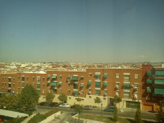 Desde lo alto de la biblioteca José Hierro, que es uno de los lugares preferidos de A., hay una panorámica de Madrid que debería ser preceptiva para las postales. Aunque en realidad, y vía Antonio López, ya lo está siendo. La densidad soleada del aire, lo que se puede barruntar desde la M-30 y la M-40, el golpe que te da la ciudad si la recuerdas desde la playa, y también una impresión de soledad, como si los edificios estuvieran vacíos o los habitara el desierto. Esa impresión de páramo que desprende la imagen sólo la desmiente el ruido.