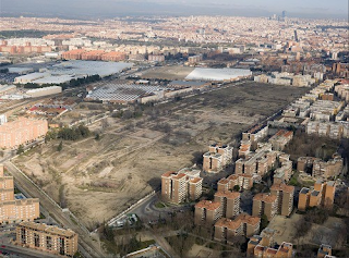 Me cuentan que el Parque de Ingenieros tiene una extensión aproximada de veintisete campos de fútbol. El terreno está destinado a la construcción de viviendas de protección oficial, plan que chocó con las reivindicaciones de algunas asociaciones de vecinos, que demandaban más terreno para zonas verdes e infraestructuras. Dichas reivindicaciones tienen su origen hace más de 20 años, cuando la Asamblea Cívica de Villaverde negoció con las administraciones y llegó a un acuerdo que permitía al Ministerio de Defensa abandonar las instalaciones sin coste alguno. En su momento, dicha solución apuntaba a la recalificación de 32.000 metros cuadrados (un 12% del terreno) para suelo residencial (unas 700 viviendas como mucho); la actual propuesta triplica el número de viviendas negociadas entonces (fuente aquí). "Desde los años 70 existe la inercia de reivindicar que las antiguas zonas del Ejército se conviertan en parques, pues se tiene la idea de que un parque responde más a la idea de espacio público que unas viviendas", me dicen mis cicerones. "Sin embargo, ¿qué pasa cuando un barrio no tiene suelo para edificar, y los hijos de los parroquianos se ven obligados a irse a otros barrios? ¿No es eso una necesidad también pública?". Y es que SEPES se defiende: el proyecto, insisten, se hace eco de la reivindicación, como prueba el hecho de que una parte del terreno haya sido donado al Ayuntamiento para que lo dividan entre zonas verdes e instalaciones deportivas, lo que subsanará algunas de las carencias de Villaverde. Como colofón al tema ecourbano, me informan de que el psiquiatra Felipe Reyero Pantigoso ha lanzado la idea de poner un huerto destinado a terapia, asunto éste que da pie a que López Groh comente que en el futuro, habida cuenta de que la precariedad amenaza con extenderse, los jardines y las jardineras de las colonias, ocupadas hoy por bojes y otros arbustos, pasarán a ser huertos que abastezcan al vecindario. Afirma el experto que el fenómeno ya se observa en Nueva York.