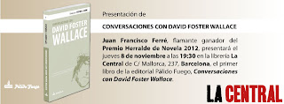 El diablo a todas horas: primeras páginas Las lágrimas del Pato Donald, de Ángel Fernández Fernández Mañana, en Barcelona blogsculturamas 7 noviembre, 2012 Escrito en el viento 1188 Views Comments Closed Presentación de Conversaciones con David Foster Wallace. A cargo de José Luis Amores y Juan Francisco Ferré. A las 19:30 horas. La Central.