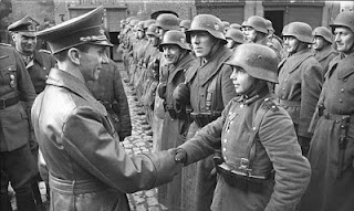 Volkssturm significa algo así como "La Tormenta del Pueblo" donde el Pueblo fue, para los jerifaltes nazis, sinónimo de carnaza. Y es que solamente el delirio mitológico nacionalsocialista podía bautizar con un nombre así a las apresuradas milicias de niños, ancianos y tullidos (entre 16 y 60 años) que tuvieron que improvisarse a finales de 1944 para intentar detener el inevitable avance de las tropas aliadas. Cuando todo estaba ya perdido, todavía podían malgastarse unos cuantos cientos de miles de vidas más. Por qué no. Todo por la Patria.