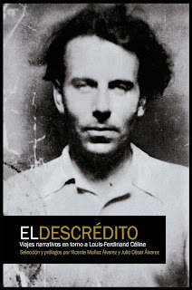 Por otro lado, pongo en un pedestal la valentía y constancia de los antólogos, que han sudado de lo lindo y las han pasado canutas para conseguir que El descrédito viese la luz. En efecto, como sabéis, las antologías no suelen tener el mismo valor literario que una novela de pura cepa, y contadísimas son las editoriales que mantienen esta filosofía editora a contracorriente del aburrido y previsible mercado. Por ello y la special guest llamada crisis, diversas editoriales rechazaron el proyecto, y Vicente y Julio seguían, mes a mes, dando a los autores noticias de cómo avanzaba el proceso hasta hallar un editor dispuesto a trabajar por la causa del polémico escritor francés —iba a poner franchute, seguro que a él le hubiese hecho gracia—. Podríamos intentar llamarle providencia, milagro, EpicWin o como queramos, pero la aparición de la Editorial Lupercalia y su firme compromiso para con la antología escapa a cualquier calificativo, por muy alabador que sea. A finales de este nauseabundo 2013, que Lupercalia y su editor, Ricardo Moreno, hayan conseguido sacar a la palestra librera El descrédito: viajes narrativos en torno a Louis Ferdinand-Céline me pone la piel de gallina y el teclado del iMac del revés —es inalámbrico, por suerte—. Y, si pienso en la nómina de autores que han participado con sus brutales textos, entonces me encierro en el baño y no salgo más. Porque haber participado como autor en este proyecto es algo que contaré a mis nietos de alquiler —para tenerlos un rato, contarles batallas y luego devolverlos—. Adjunto, cómo no, los autores que han participado. Si piensan que me he inventado algún nombre, en todo caso sospechen del mío: