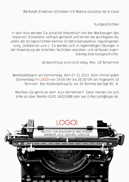 Cartel de Séptimo Historias del arcoíris, de William T. Vollmann Taller de escritura de relato blogsculturamas 28 octubre, 2013 Club Culturamas, Un esqueleto en el escritorio 1193 Views Comments Closed La semana que viene comienza el taller de escritura creativa dedicado al relato que ofreceré en Logoi, Institut für Philosophie und Diskurs. Aquí están todos los detalles: