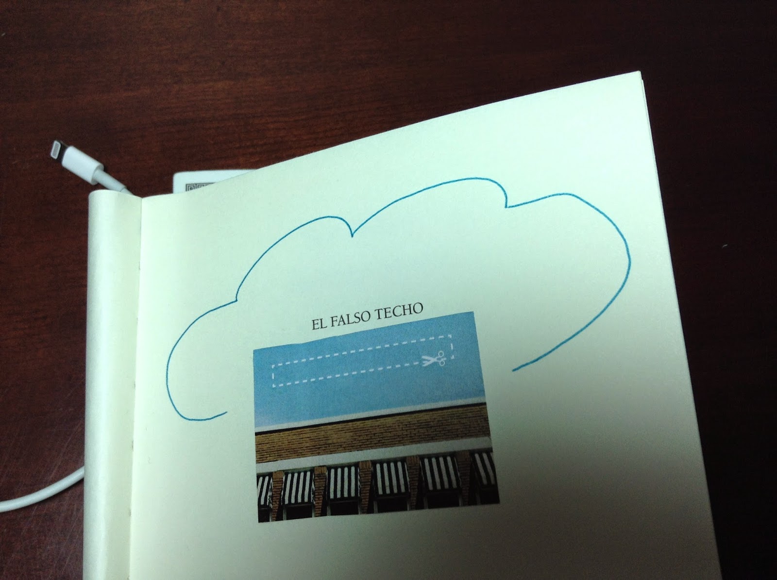 Aquí la imagen que pegó Erika en mi ejemplar de El falso techo: