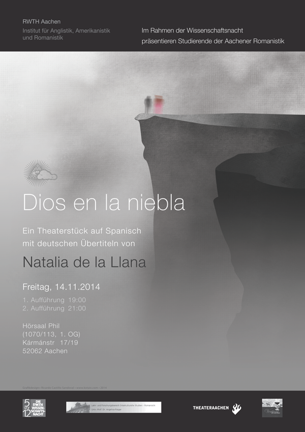 El 14 de noviembre se estrena mi obra de teatro Dios en la niebla en el Departamento de Románicas de la Universidad de Aquisgrán (Alemania). Hay función a las 19:00 y a las 21:00. La representación es en español, pero hay también sobretítulos en alemán... :)
