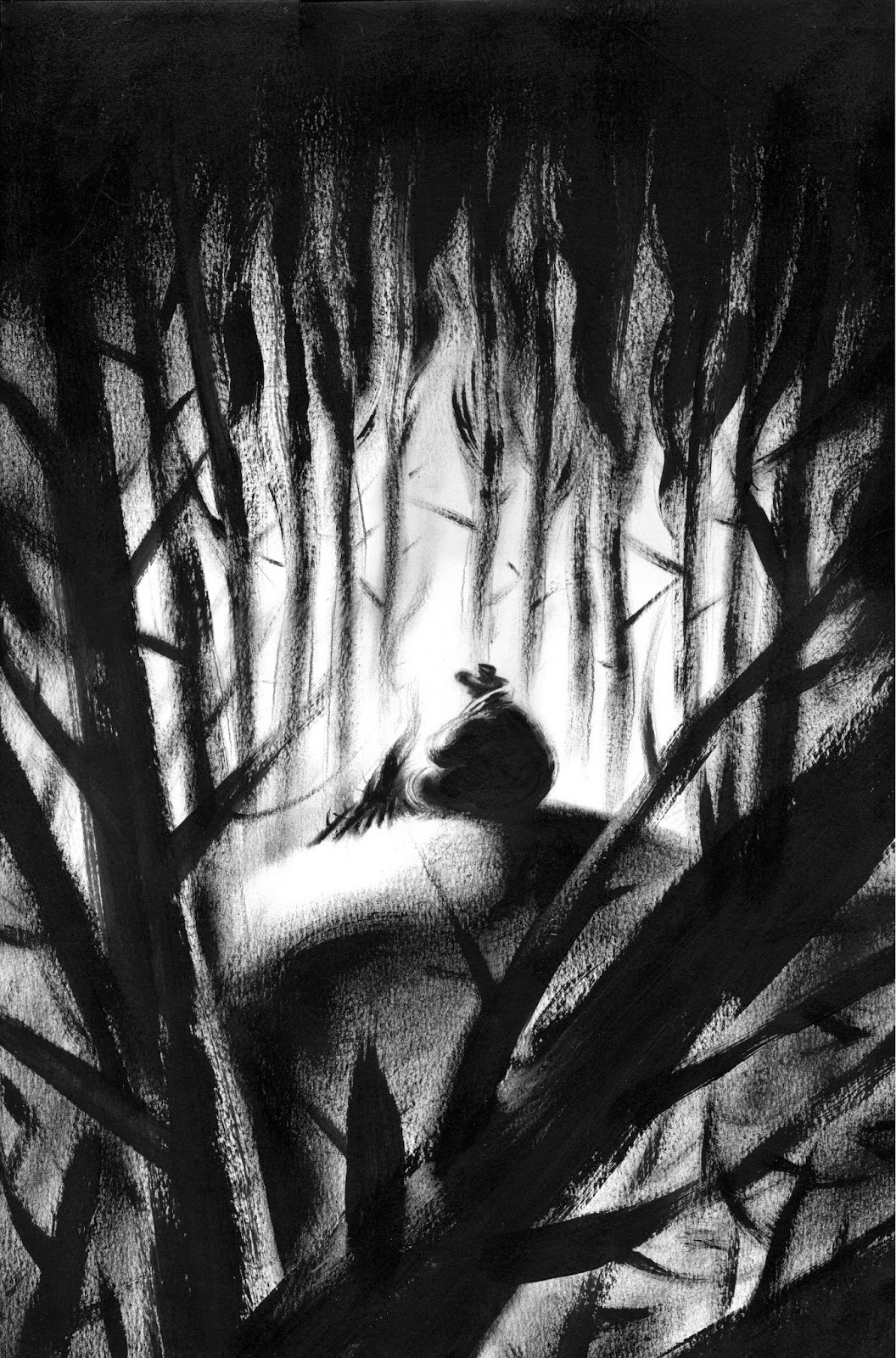 No debería tomar más peyote, piensa Klaus recordando su última cura con el brujo Genaro hace unos días, mientras apura con manos temblorosas una botella de whisky, no debería tomarlo más, al contrario de lo que el viejo me aseguró, cada experiencia es peor y más delirante, y las bajadas duran semanas... Piensa esto, Klaus, apurando nervioso la botella de whisky, mientras aviva en medio de la llanura las llamas de su fogata, que apenas alcanzan a iluminar unos metros de pradera en la noche... Más allá, todo inmensidad y negrura... y alaridos de coyotes y chotacabras... o de espíritus vengativos... Maldito el día en que nos encontramos a aquel indio, masculla entre dientes, todo desde entonces ha ido de mal en peor... Y acto seguido recuerda por enésima vez la historia: aquel piel roja enloquecido que se encontraron en las montañas, mientras bateaban un río de aguas heladas, sangrando por los ojos y con los pies llenos de quemaduras, aullando la palabra Wendigo... Se abalanzó sobre ellos como una bestia herida, seguramente pidiendo auxilio nomás, pero Warren perdió los estribos al verle desencajado y vociferando de aquella manera y le incrustó una bala entre las cejas... Y después las desapariciones: el propio Warren, primero, y luego Jack y Peter, silenciosamente y sin dejar rastro, en plena noche y mientras dormían, hasta quedarse él solo en las montañas... Y a continuación, ya de vuelta a casa, tras salir no sabe cómo del bosque y alcanzar las praderas, la paranoia y el miedo: esa sensación continua de sentirse observado y los silbidos ominosos del viento... Y el peyote de Genaro como remedio contra el terror después, que en el fondo, cree, le está volviendo más loco todavía... Todo esto piensa Klaus junto a su fogata esta noche, de regreso de la cabaña del brujo al otro lado de la frontera, mientras aviva atemorizado las llamas y apura compulsivamente la botella de whisky... Las curas de peyote que el brujo le recomendó no están surtiendo el efecto esperado, más bien al contrario, por más que le insista Genaro, están potenciando sus fobias... Sobre todo las últimas veces (y van ya cerca de diez), especialmente traumáticas, con aquellas visiones de un ser mitad hombre mitad coyote devorando su corazón... Que eso le hará enfrentarse a sus fantasmas, le asegura Genaro, que pronto los conjurará, que sea paciente y perseverante, dice, pero Klaus siente cómo con cada nuevo viaje pierde más la cabeza y se acentúan sus miedos, como en este mismo instante, de regreso de la cabaña del brujo a su casa, percibiendo cada vez más cercana la presencia de ese maligno ser... No debería tomar más peyote, piensa junto a la hoguera, mandaré al carajo al viejo, no creo ya en sus monsergas... Eso se dice Klaus tembloroso, mientras apura la botella de whisky a la luz tenue de las llamas, cuando una ráfaga de viento helado apaga de súbito la fogata sumiéndole en la oscuridad... El terror y la histeria se apoderan entonces de él... Y arranca, como alma que lleva el diablo, a correr sin rumbo en la noche...