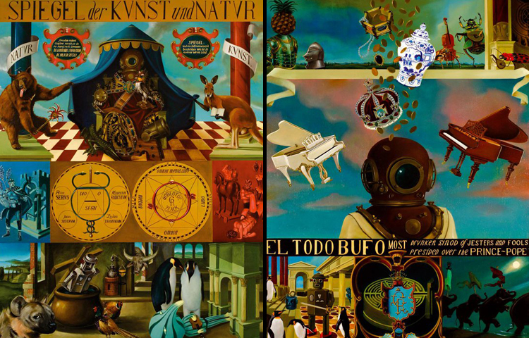 Gonzalo Rueda es uno de los máximos representantes del surrealismo pop en nuestro país (y es uno de nuestrosa artistas favoritos). Lo vio con claridad Joan S. Luna, editor de Los colores del underground, esa antología de referencia del surrealismo pop contemporáneo.Le conocemos, además, por su labor editorial al frente del colectivo Estudiosos del Tema, responsables de una revista de arte brillante e impredecible que responde al nombre de La Cruda. La labor de Rueda en los últimos años ha sido prolífica y diversa, ha dejado su impronta en portadas de discos (reales e imaginados), ha dibujado cómics y cuadernos de viajes y ha pintado, mucho, desde retablos a series fábuladas, pasando por óleos de gran tamaño tan fértiles como voluptuosos.