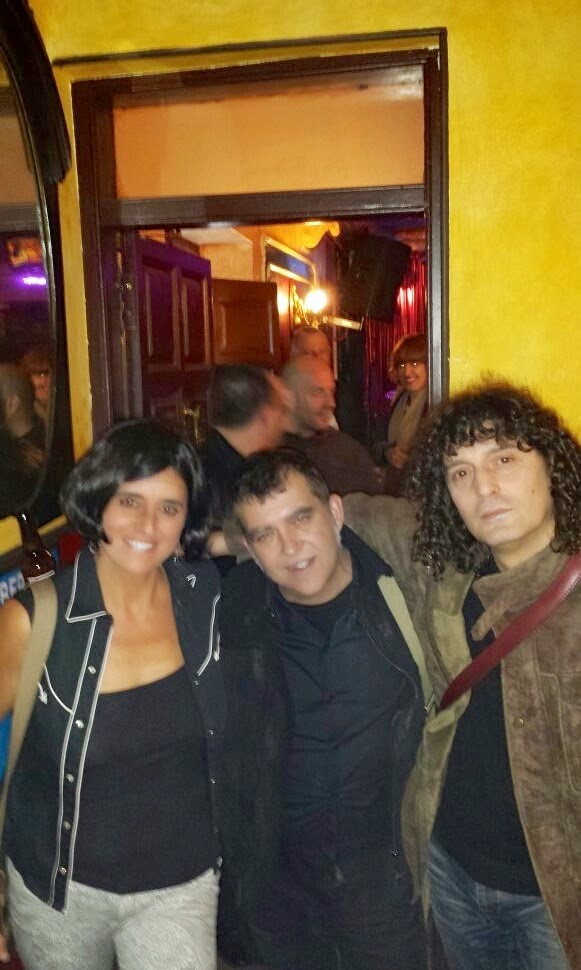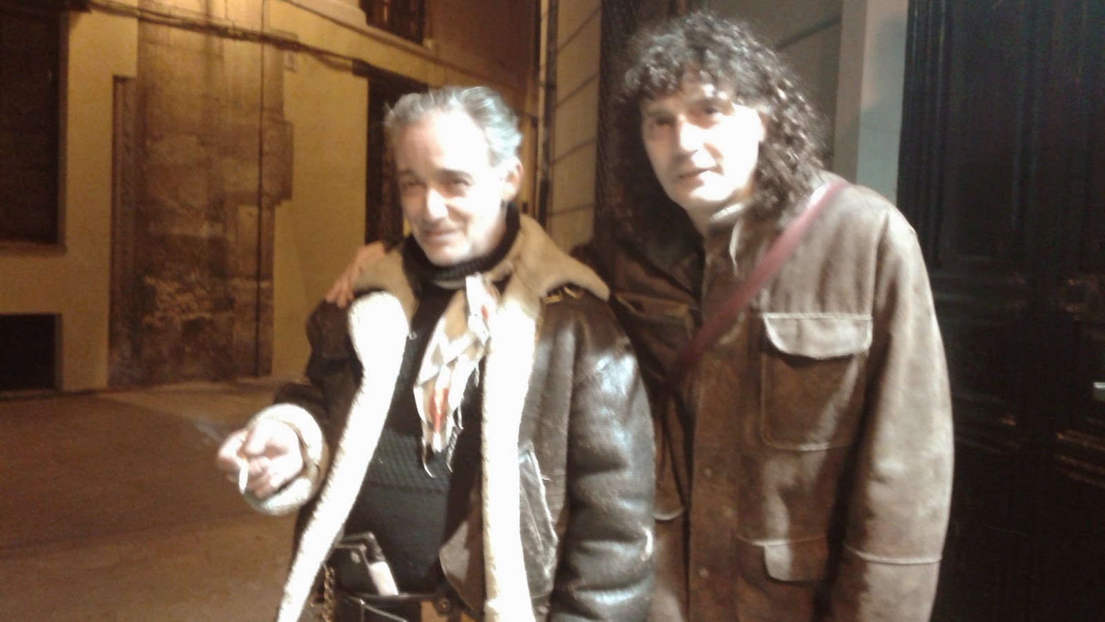Otra sorpresa fue Alberto García-Alix. Coincidió que salí afuera a fumar y estaba hablando con Rafael Saravia cuando de pronto veo venir a Alix, seguido de Marta, una chica de su equipo de trabajo, así que le saludo, me mira, le digo: David... entonces me reconoce, se le ilumina la cara con una sincera sonrisa, nos abrazamos, nos saludamos, charlamos, y Marta nos saca esta fotografía, antes de entrar todos dentro a seguir disfrutando con las Regresiones de Vicente Muñoz Álvarez: