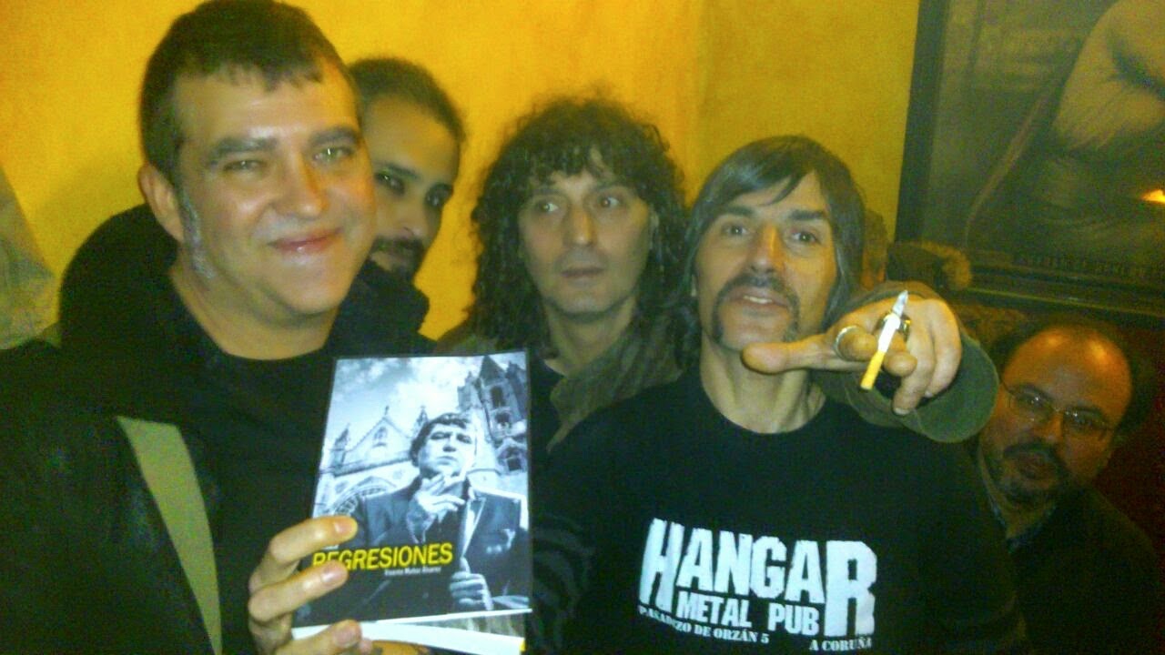 No se dan muchos días como el de ayer en la vida de un escritor y menos todavía en la vida de un escritor en los márgenes de la cultura oficial. Y no hablo de mí. Hablo de Vicente Muñoz Álvarez. Un tío que lleva dando el callo más de 20 años, escribiendo y editando libros prácticamente cada año desde que le conozco (allá por el 95 o 96), amén de su labor al frente del mítico Vinalia Trippers o como coordinador de antologías de muy diversa índole... Sin embargo, ayer todo se conjuró para que la presentación de Regresiones saliera perfecta. Desde el hermoso día soleado a la cantidad de peña que llenó hasta la bandera el Gran Café, disfrutó de la presentación y se llevó un ejemplar de Regresiones con la dedicatoria de su autor. Dicho de otro modo: ayer, a mi entender, Vicente Muñoz Álvarez se consagró en su ciudad, una ciudad que está presente en todas y cada una de las páginas de estas Regresiones.