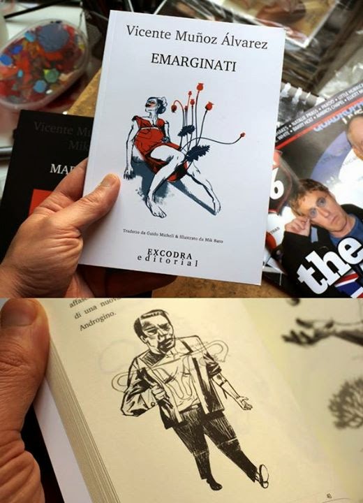 Ya es casualidad haber recibido hoy vía postal la edición al italiano de MARGINALES, sip... aquel bestiario del puño y la letra de Vicente Muñoz Alvarez, que tiempo hace me encargué de ilustrar y cuya edición original vio la luz allá por 2008 de mano de Eje ediciones. Ahora es el amigo Rubén, que con Excodra Literatura no se contenta solo con reeditarlo en castellano sino que también lo abre al mercado italiano, a lo loco! mucha suerte!!