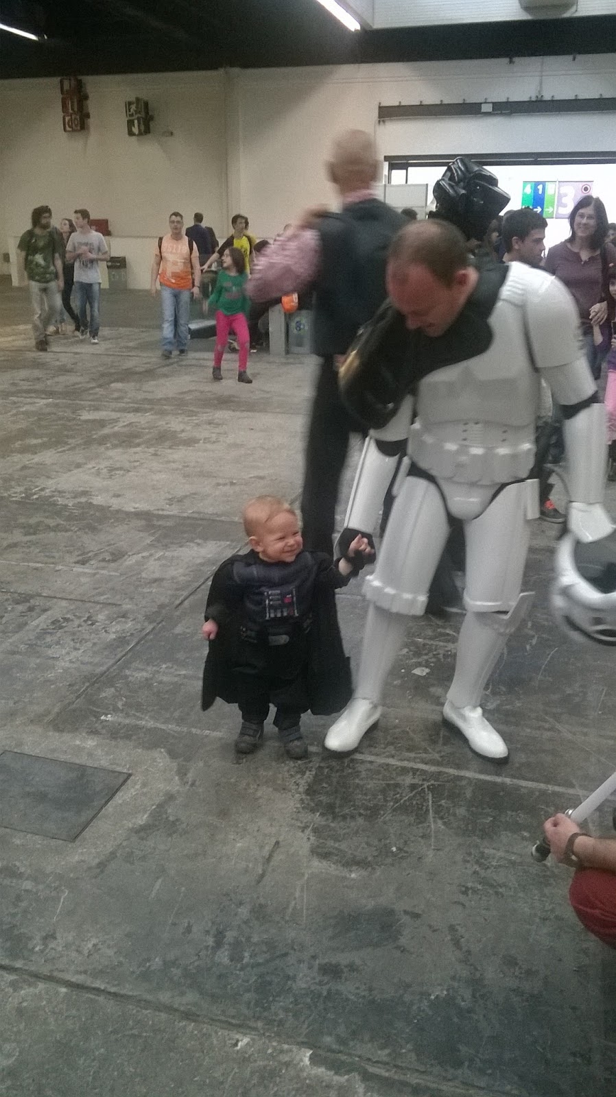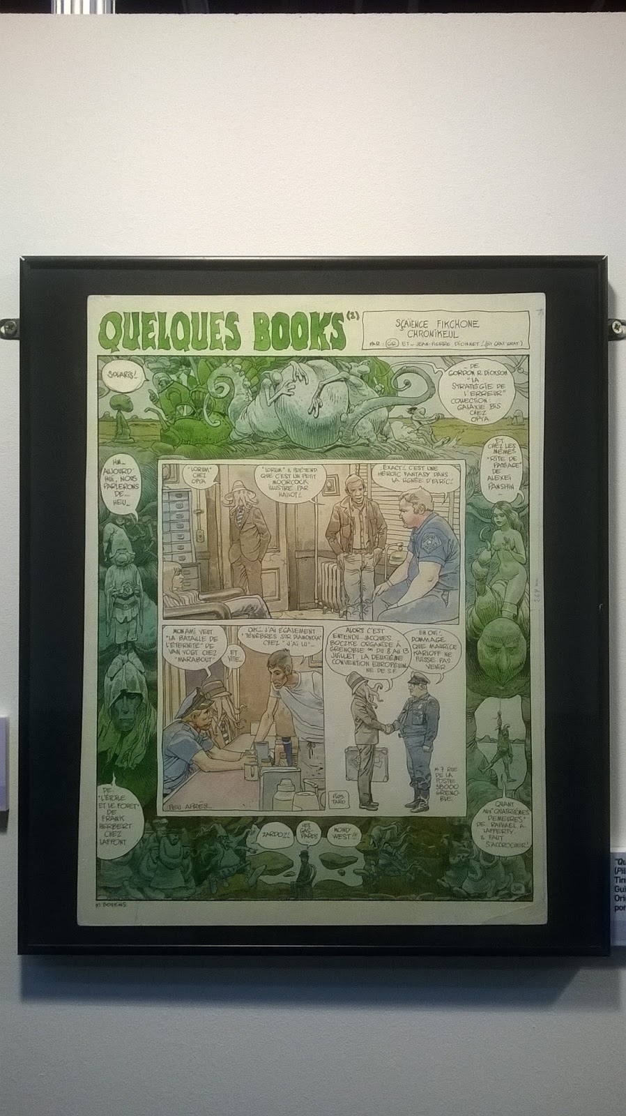En la planta superior, entre R2D2s, Estrellas de la Muerte y Juegos de Tronos, se mostraba "Cómics fantásticos", la exposición estrella de un Salón dedicado a la fantasía. Un muestrario impresionante, y un tanto disperso, de originales de primer nivel (organizados en cuatro o cinco categorías genéricas); entre ellos, encontramos páginas que habíamos leído y releído cien veces de Raymond, Moebius, Chaykin, Corben, Serpieri, Bilal, Peeters y cualquiera que tengan ustedes a bien pensar. Más músculo y exhibición ferial que sistema. Impresionantes, por cierto, los grandes óleos de Corominas para las portadas de libros e ilustraciones de la edición española de Juego de Tronos.