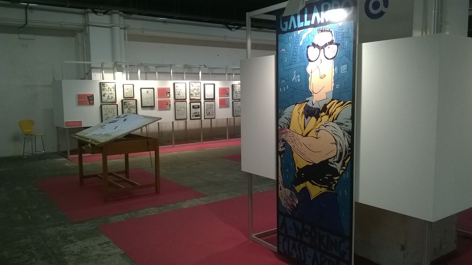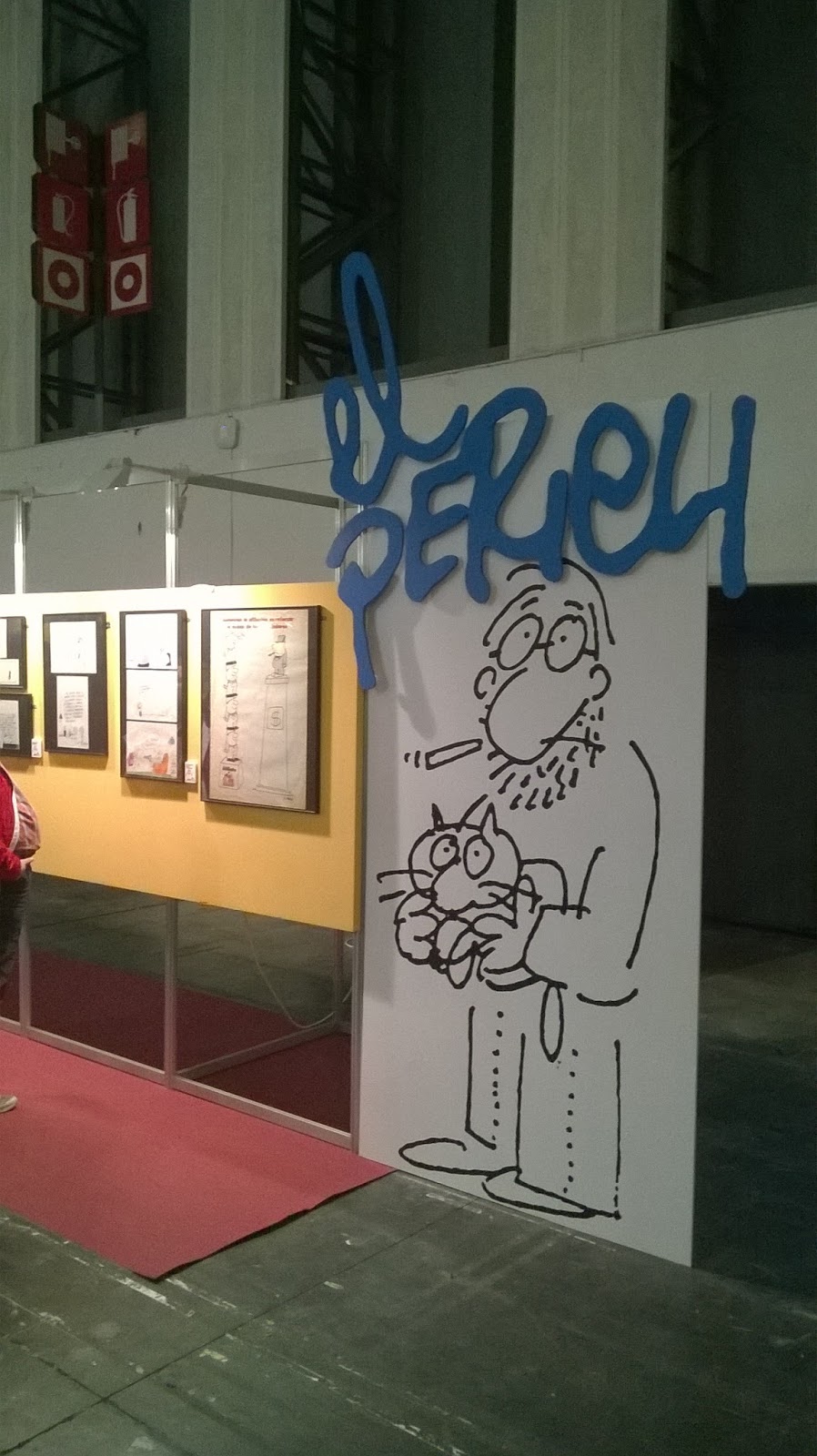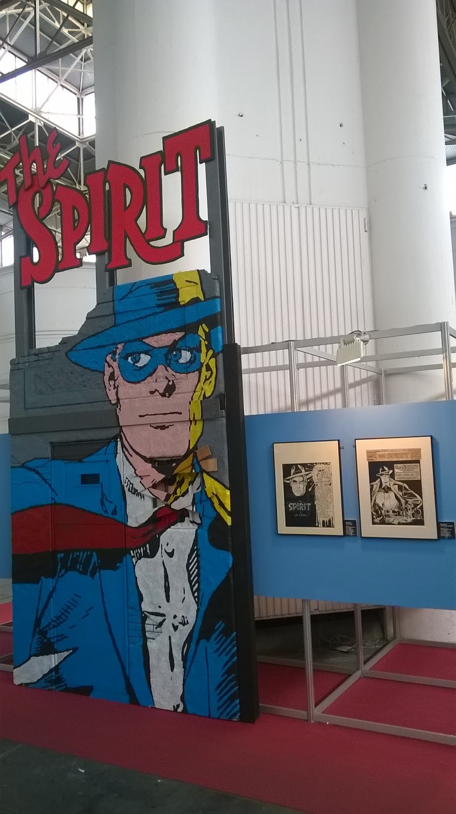 Entre los peros a la nueva ubicación y distribución del Salón (siempre hay una cruz), parece obvio que las exposiciones y muestras han perdido presencia y prestancia en la vastedad del escenario; hasta la organización parece haberlo entendido así: daba un poco de pena ver las impresionantes planchas originales de The Spirit desparramadas en una desangelada nave lateral de la planta baja. Hubieran merecido más atención y cariño. Un tanto sucedía con el resto de las exposiciones que se se hallaban alejadas de los lugares centrales de la muestra: desapercibidas pasaban la de las "Autoras de cómic femenino en el Franquismo 1940/1970", e incluso la de "Anacleto Agente Secreto" (aunque en este caso la parafernalia cinematográfica dotaba de más presencia a los paneles expositores). Algo mejor trato recibieron la interesantísima exposición sobre Gallardo (pese a su disposición esquinada), la de Perich o la de los estupendos trabajos de "Cifré & Cifré", padre e hijo. Gotas de agua en un oceano de stands, bares, cafeterías, tenderetes, estructuras publicitarias, photocalls y puestos de chuches, en todo caso.