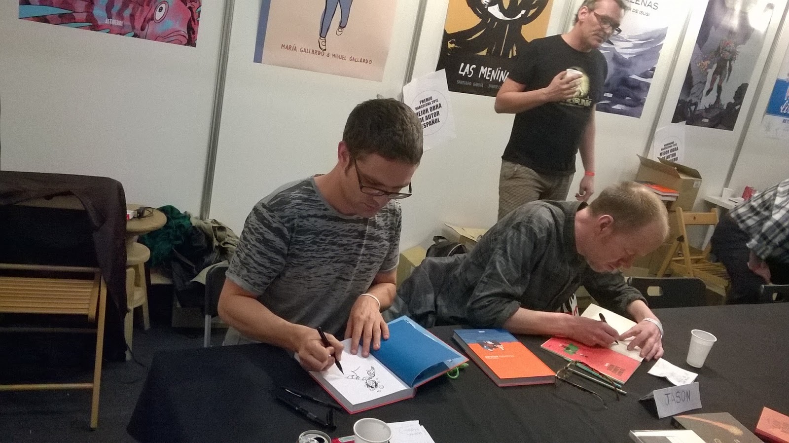 Pero, no nos engañemos, quizás lo mejor de estos macroeventos resida en su capacidad aglutinadora, su condición de excusa perfecta para visitar una ciudad estupenda como Barcelona, reencontrarse con viejos amigos como Pejac o López Cruces, hablar y discutir de cómics, y conocer a tipos tan majetes como Javier de Isusi, al tiempo que te desvelan los secretos de sus cómics a la sombra de una cervecita (o más).