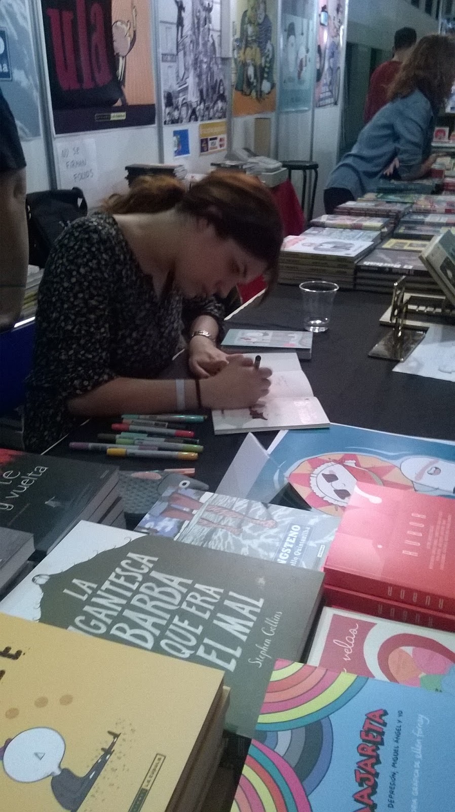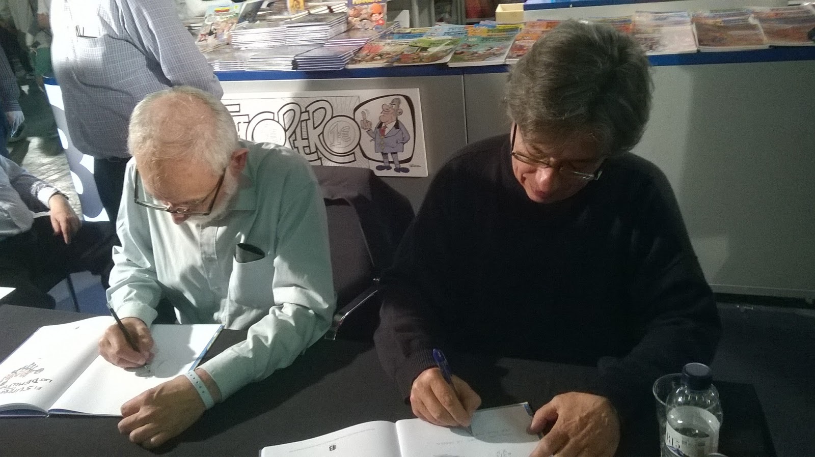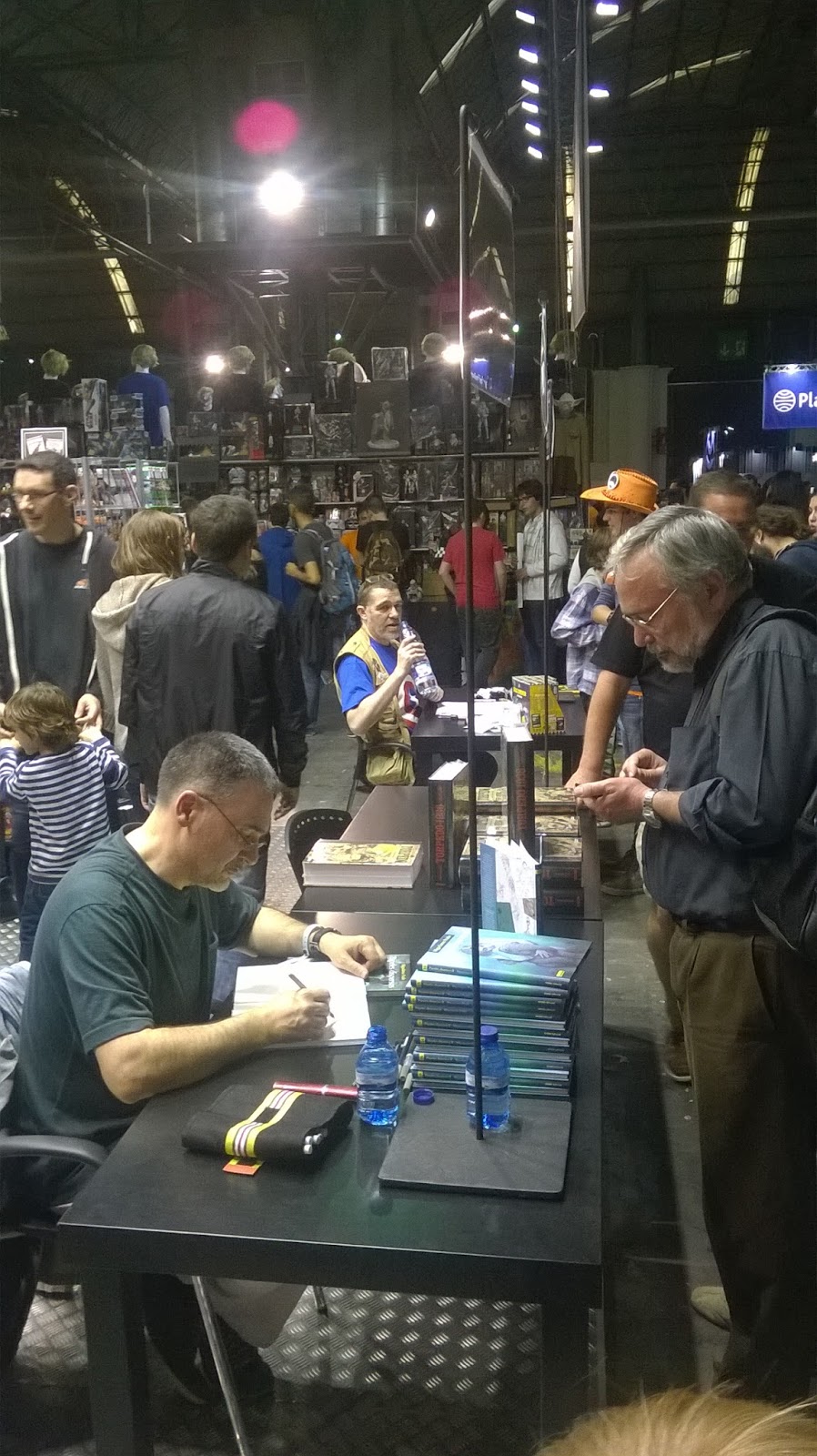 Entre nuestras actividades favoritas del Salón está, sin duda, la de poner cara a autores que admiramos y saludar a otros con los que ya nos hemos cruzado en alguna ocasión anterior. A algunos de ellos (polifacéticos y pluriempleados), como Pepo Pérez, nos los encontramos en la reunión matinal de la ACDCómic (Asociación de Críticos y Divulgadores de Cómic de España), que José Antonio Serrano, nuestro presidente, había organizado con tanto mimo y dedicación como siempre para la mañana del sábado. A otros tuvimos ocasión de saludarlos durante el Salón. Tuvimos ocasión de cruzar unas palabras y pedir dedicatoria, por ejemplo, a nuestro admirado Igor, o a Bryan Talbot, que asistió a la jornada de firmas junto a su mujer Mary Talbot. Observamos solidarios la ola de fervor que está engordando Frederik Peeters con cada nueva obra que publica; y con la inercia hipnótica de ese Aama suyo que va camino de convertirse en el gran cómic de ciencia-ficción de la década; y pudimos constatar que, un año más, las grandes colas del salón homenajean a tipos esenciales de nuestra historia viñetera, como son Jan o Ibañez. Importante, por cierto, la legión de admiradores que arrastraron Ana Oncina y su Croqueta y Empanadilla (Premio Popular a la Mejor Obra).