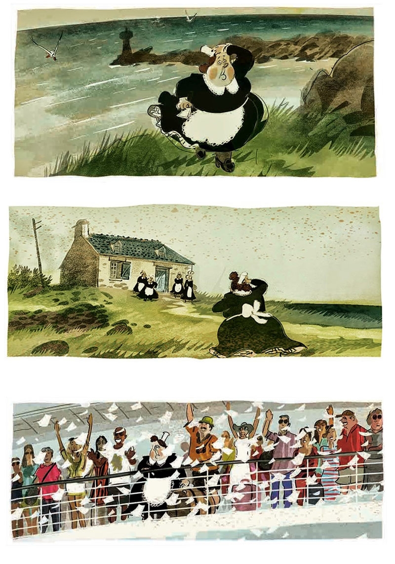 Un oceano de amor es, efectivamente, un libro marinero, un relato de aventuras y una ensoñación romantica; pero el guión de Wilfrid Lupano encierra igualmente un gran vodevil con trazas de comedia costumbrista, un enredo en el que tienen cabida piratas del Índico, guapas modelos de revista, plañideras bretonas y hasta un Fidel Castro convertido en bailarín improvisado... Como lo oyen.