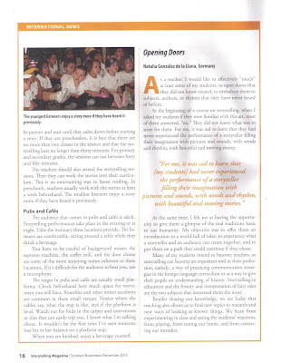 Espero curarme de ti Próximamente: Los muchachos de zinc Opening Doors: artículo sobre narración oral blogsculturamas 2 enero, 2016 Un esqueleto en el escritorio 1344 Views Comments Closed Un breve artículo que escribí para "Storytelling Magazine" sobre el bello arte de la narración oral...