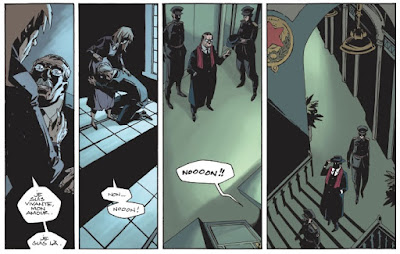 Porque este es, en realidad, un cómic coral; un trabajo en el que el protagonista permanece siempre en un segundo plano, mientras la sombra de sus atrocidades cruza cada una de sus páginas creando una red de sobreentendidos, referencias a trágicos acontecimientos históricos e insinuaciones en voz baja sobre el gulag, las purgas intestinas, el miedo generalizado, la paranoia o las delaciones. La corte de personajes que rodeaban a Stalin protagoniza unas páginas y una Historia sobre cuyas licencias nos advierten sus propios autores: