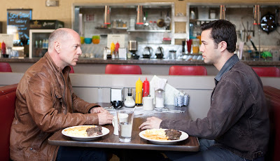Joe joven (Gordon-Levitt) a Joe viejo (Bruce Willis) en Looper (2012, Rian Jonshon).