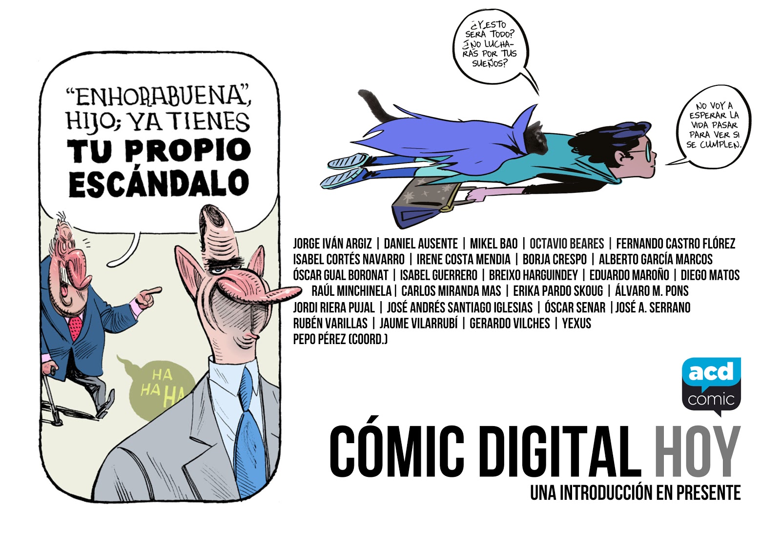 En 'Cómic digital hoy: una introducción en presente', bajo la coordinación de Pepo Pérez, escriben miembrosde la ACDCómic y otros estudiosos del cómic y las artes visuales: Jorge Iván Argiz, Daniel Ausente, Mikel Bao, Octavio Beares, Fernando Castro Flórez, Isabel Cortés Navarro, Irene Costa Mendia, Borja Crespo, Alberto García Marcos, Óscar Gual Boronat, Isabel Guerrero, Breixo Harguindey, Eduardo Maroño, Diego Matos, Raúl Minchinela, Carlos Miranda Mas, Erika Pardo Skoug, Pepo Pérez, Álvaro Pons, Jordi Riera Pujal, José Andrés Santiago Iglesias, Óscar Senar, José A. Serrano, Rubén Varillas, Jaume Vilarrubí, Gerardo Vilches y Yexus. En total, más de 700 páginas para analizar cómo internet y las tecnologías digitales han abierto nuevos caminos para el cómic.