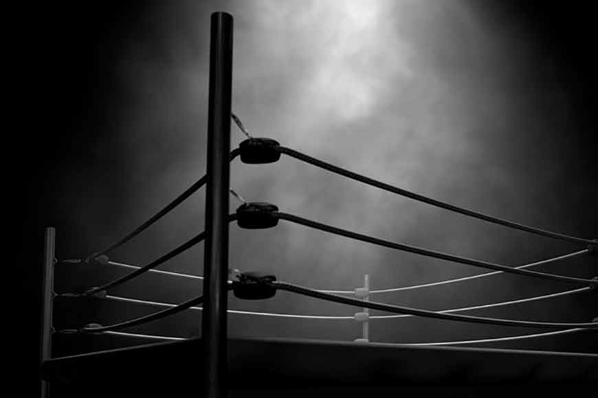 Mira el ring desde fuera del cuadrilátero. Nada puede hacer salvo pedir en sus adentros que los golpes dejen de castigar a los púgiles enfrentados en cruento combate.