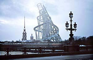 En la historia de las plegarias no atendidas, contamos con el fantástico Monumento a la Tercera Internacional de Vladimir Tatlin, uno de esos genios que se escurren en la historia. En la recreación de la foto se planeaba construir la torre en San Petersburgo, cuatrocientos metros de hierro, acero y vidrio -más alta que la torre Eiffel-, futura sede de la Internacional -y de algunos restaurantes-. El proyecto se presentó a comienzos de los años veinte del siglo pasado, pero la guerra y los costes de construcción lo jibarizaron a una maqueta. La vida de Vladimir Tatlin, arquitecto, pintor y escultor constructivista es igual de apasionante que este proyecto.