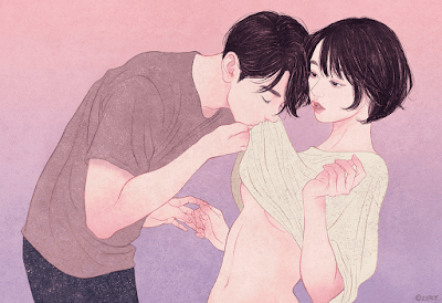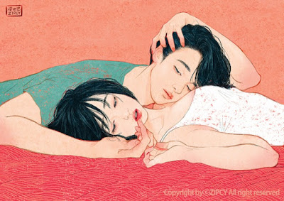 Después de varias entradas cargaditas de texto, vamos a dejar descansar los ojos. De las últimas ilustraciones que hemos econtrado en la red, las que más nos han gustado son las de la coreana Zipcy. Sus imágenes de parejas retozando y zanganeando son un tanto candorosas y pastelonas, de acuerdo, pero desprenden un erotismo de caricias y andar por casa magnético e irresistible; son imágenes de una belleza lánguida y sencilla que conecta con el manga y el anime, pero también con la ilustración erótica clásica japonesa y hasta con cierta mirada costumbrista amatoria que expotó en el cine europeo de autor de los años 60 y 70.