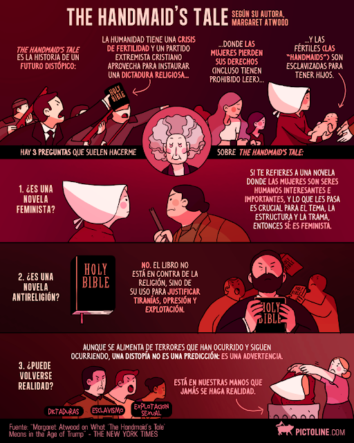 Bajo esta tesitura, opino que todos los escritores desearíamos que un guion televisivo o cinematográfico reflejara el alma de nuestra obra. Esto, por suerte para la autora, es lo que le sucede a El cuento de la criada. Con el aditivo de que, sobre todo en la serie televisiva, la fuerza de las imágenes y las licencias de los guionistas, han edulcorado hasta tal punto la novela, que ha cautivado por completo a los espectadores. No es para menos.