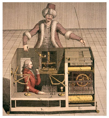 Mucho se escribió en su día, también, sobre aquel autómata fabuloso bautizado "El Turco"; jugador de ajedrez imbatible que entre sus "víctimas" contó a reyes, nobles y hasta al mismísimo Napoleón. A este ingenio mecánico (diseñado por el Barón Wolfgang Von Kempelen en 1769) le dedicó Edgar Allan Poe el artículo titulado "El jugador de ajedrez de Maelzel", en el que –como si abordara un misterio insondable– intentaba desentrañar el secreto inexplicable del autómata invencible. Sobre "El Turco" giraba igualmente "El maestro de ajedrez", de Ambrose Bierce. Mucho más recientemente, han sido Alex Romero y el dibujante Fritz quienes han recuperado el texto de Alan Poe para trasladar a viñetas el mito de este singular ajedrecista inanimado en una historia corta, titulada como el texto original: "El jugador de ajedrez de Maelzel".
