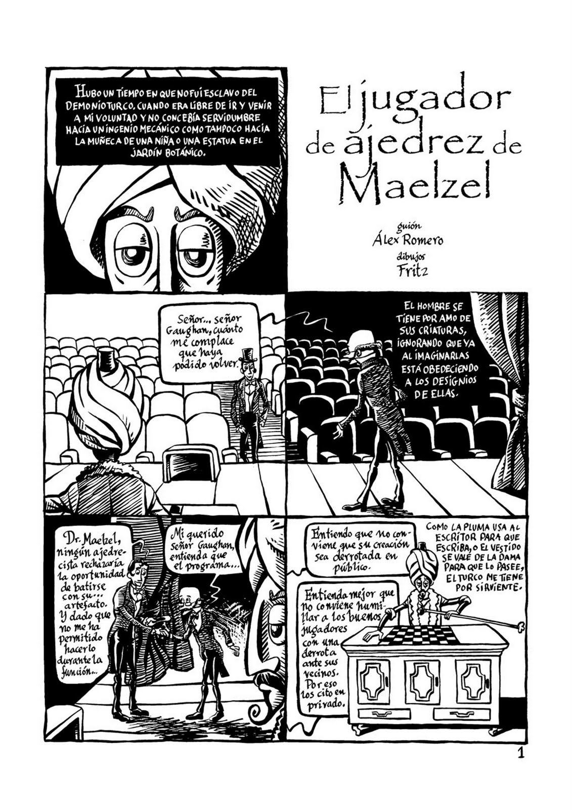 Mucho se escribió en su día, también, sobre aquel autómata fabuloso bautizado "El Turco"; jugador de ajedrez imbatible que entre sus "víctimas" contó a reyes, nobles y hasta al mismísimo Napoleón. A este ingenio mecánico (diseñado por el Barón Wolfgang Von Kempelen en 1769) le dedicó Edgar Allan Poe el artículo titulado "El jugador de ajedrez de Maelzel", en el que –como si abordara un misterio insondable– intentaba desentrañar el secreto inexplicable del autómata invencible. Sobre "El Turco" giraba igualmente "El maestro de ajedrez", de Ambrose Bierce. Mucho más recientemente, han sido Alex Romero y el dibujante Fritz quienes han recuperado el texto de Alan Poe para trasladar a viñetas el mito de este singular ajedrecista inanimado en una historia corta, titulada como el texto original: "El jugador de ajedrez de Maelzel".