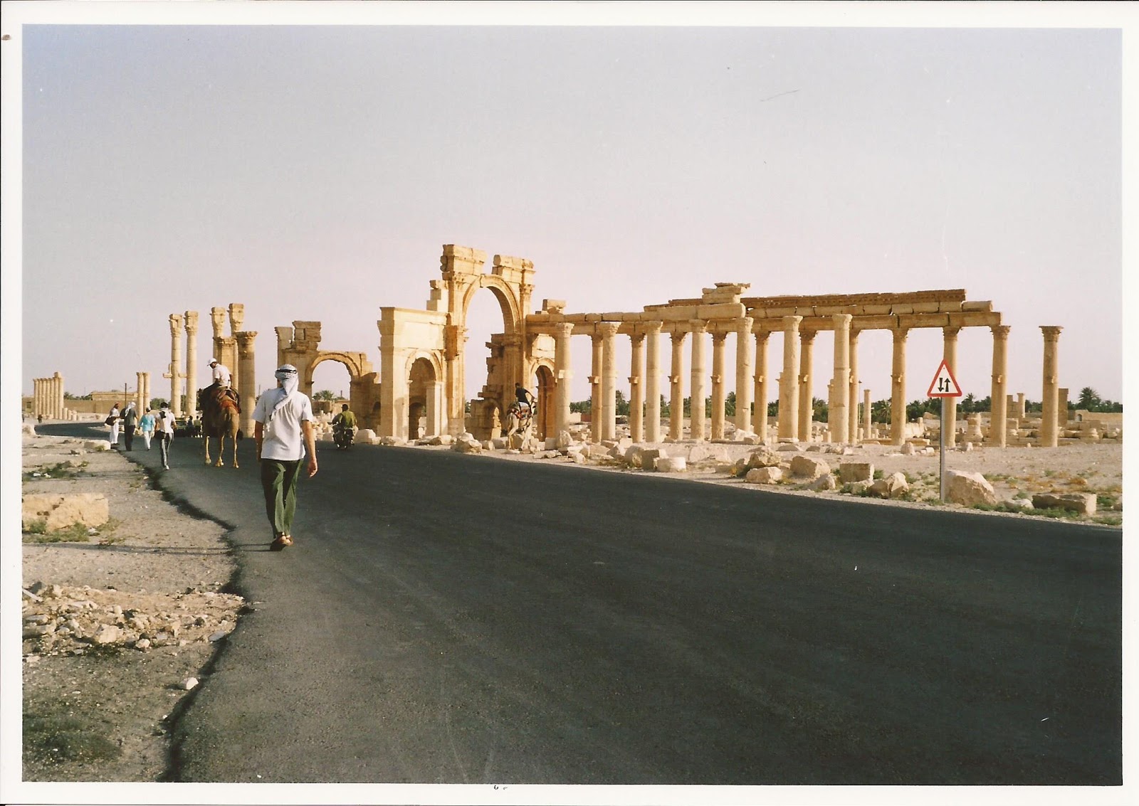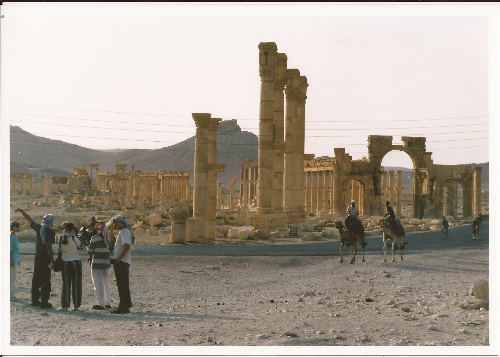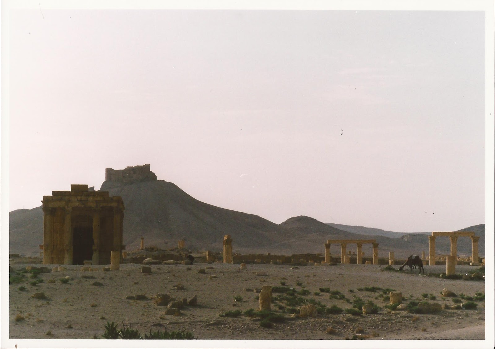 Paseamos por las ruinas de Palmira, de día y de noche, sin nadie que nos controlara o dirigiera, sin barreras o entradas de acceso (se pagaba una única tasa cuando se entraba a la ciudad, nos parece recordar). No había muchos más turistas que nosotros: los únicos actores en su teatro romano, increíblemente conservado; los únicos caminantes que cruzaban de noche la encrucijada del Tetrapylon o paseaban al lado del Templo de Bel con el eco lejano de los chacales y del viento. Desde las ruinas del castillo de Palmira (Qalʿat Ibn Maʿn), acompañados por las cabras y algún niño pastor sonriente, uno podía sentirse cercano a aquellos viajeros románticos que, como el conde de Volney, se sobrecogían ante las Ruinas de Palmira y creían ver elevarse su alma hacia alguna instancia superior.