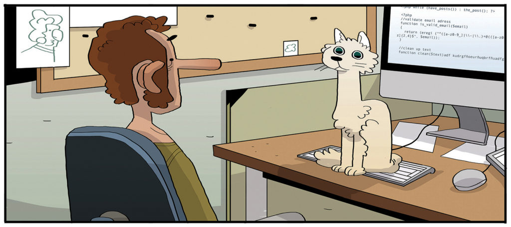Pese a su íntima abstracción filosófica, es éste de la "filosofía doméstica" un nicho temático en el que el cómic se adentra con relativa frecuencia. Reconociéndole la paternidad del "género" a Robert Crumb, Esteban Hernández emparenta con otros autores muy diversos como Kevin Huizenga o Joe Decie. Lo que más sorprende en el ciudadrealeño, no obstante, es que, para desplegar sus intimidades reflexivas, apueste por un estilo gráfico profundamente antinaturalista y continuamente cambiante. En Usted #9 hay ejemplos numerosos de esa alternancia estilística que discurre desde el caricaturismo ligeramente cubista a la deformación grotesca. Esteban Hernández en estado puro.