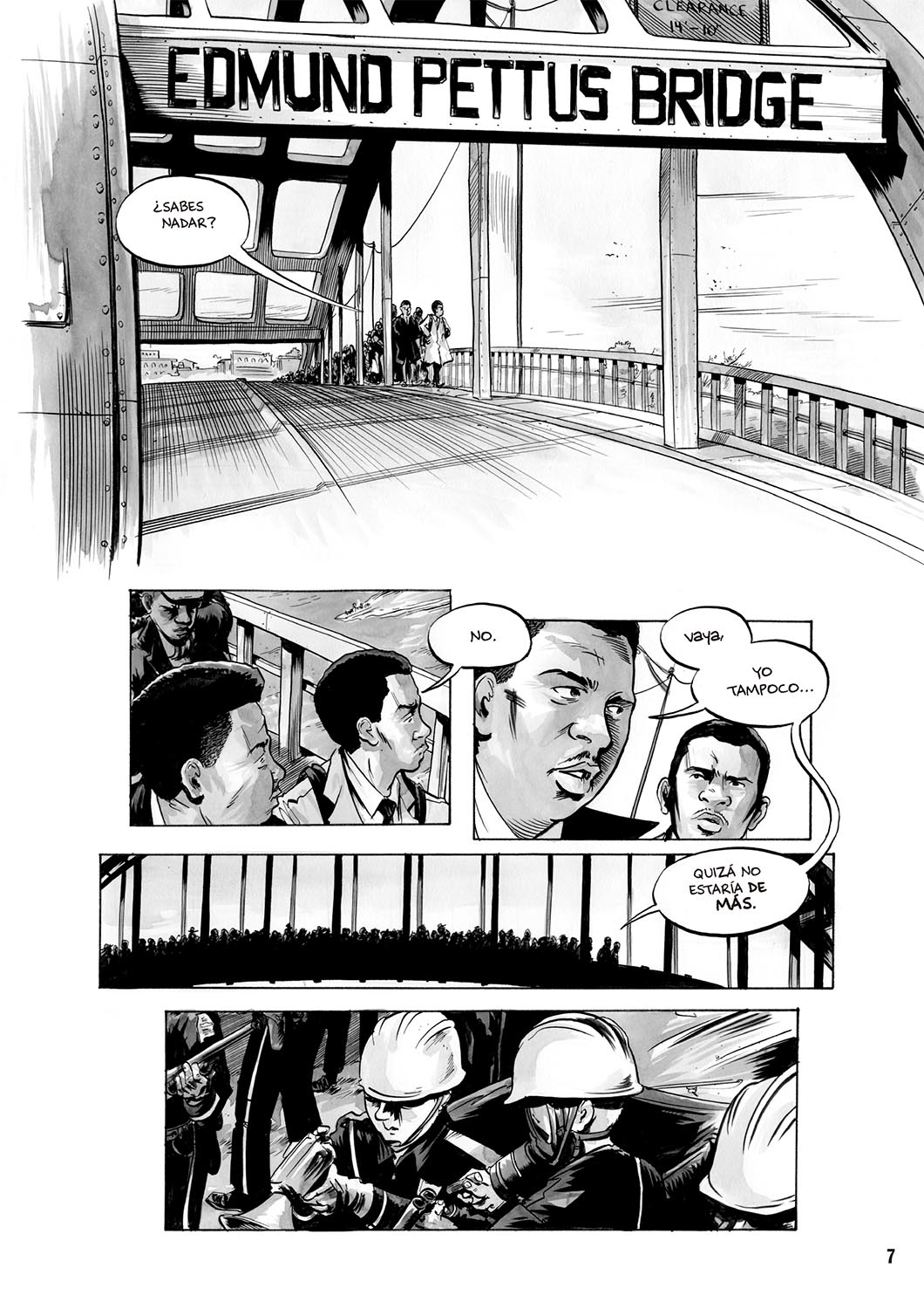 El cómic de Lewis, Powell y Aydin describe algunos acontecimientos históricos fundamentales del siglo XX, como la Marcha sobre Washington por el trabajo y la libertad de 1963, y arroja luz sobre uno de los hechos más vergonzante y dramático de la historia reciente de las democracias liberales: la segregación racial en Estados Unidos. John Lewis fue uno de los miembros fundadores y posterior presidente de la SNCC (Comité Coordinador Estudiantil No Violento), uno de los movimientos que más trabajó por el final del racismo social y político en los Estados Unidos. La obra se acerca a los acontecimientos históricos sin remilgos ni medias tintas, desde la posición privilegiada que ofrecen los recuerdos de un testigo directo como Lewis. El lector asiste espantado al teatro de deshumanización y barbarie que, durante décadas, protagonizaron los estados sureños de Estados Unidos. Somos testigos de las matanzas y atrocidades que los ciudadanos de ciudades como Nashville, Liberty, Montgomery, Selma o Birmingham cometieron contra sus conciudadanos negros ante el silencio cómplice del resto del país y de su clase dirigente.