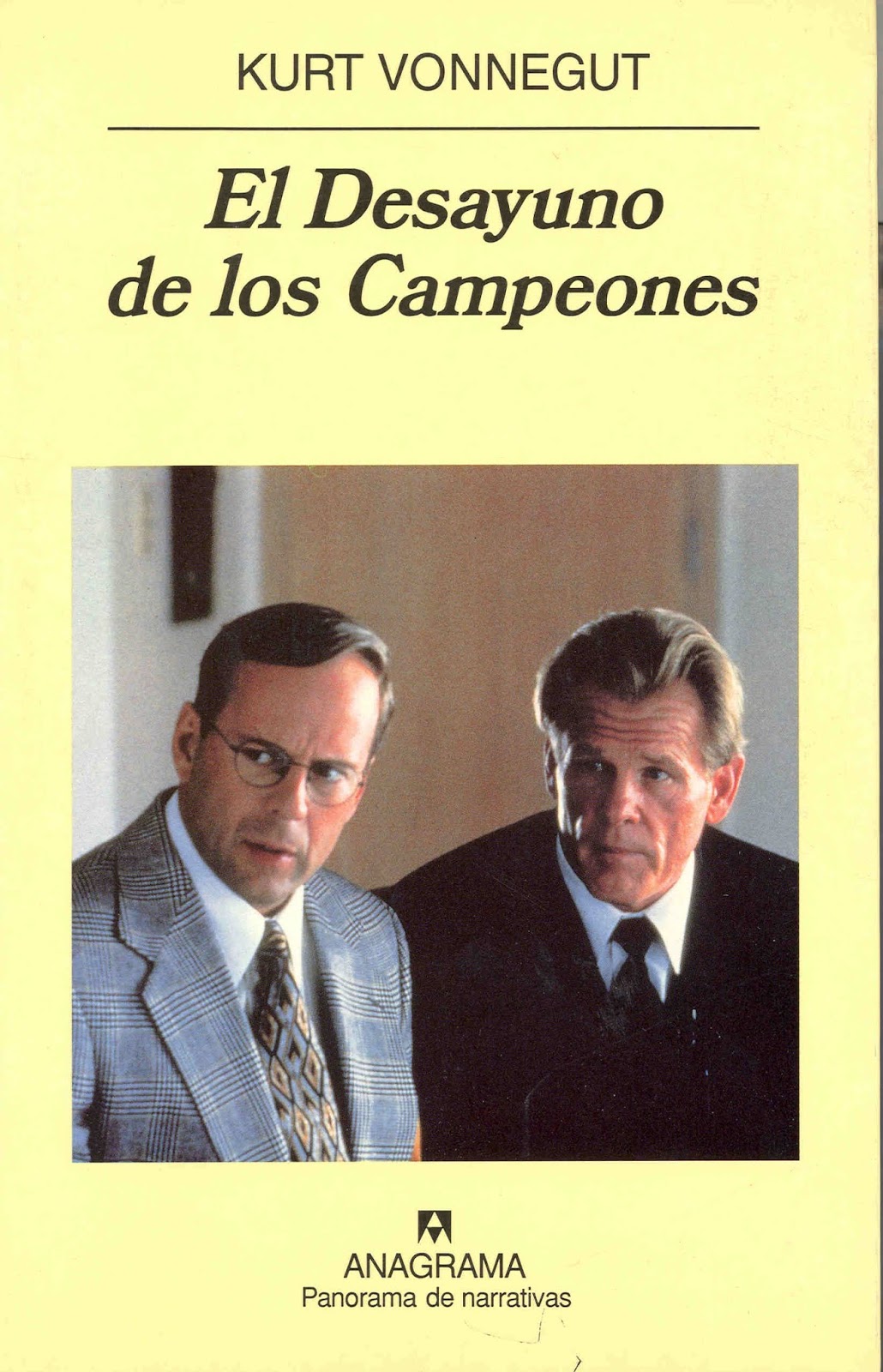 El Desayuno de los Campeones, que fue adaptada por Alan Rudolph en una película que nunca me llamó la atención y, por tanto, no he visto, nos plantea un argumento metaliterario, con un autor, Philboyd Studge, que va componiendo un libro en el que comparecen personajes suyos de otras obras, así como restos de historias, y por supuesto un montón de dibujos, muchos de los cuales provocan la carcajada del lector. Como un maestro de marionetas, Vonnegut mueve a Studge, y Studge pone en el tablero de la ficción al escritor de ciencia ficción Kilgore Trout y al vendedor de coches Dwayne Hoover, dos personajes que se acabarán encontrando al final. Personajes a un paso de la locura, situaciones rocambolescas y un narrador que a veces se introduce en la escena que está creando/escribiendo: