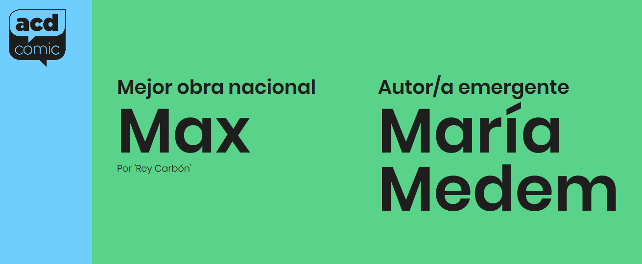 En el año de estreno del galardón, el Premio a la Mejor Obra ha recaído en Max, por Rey Carbón, "por su exploración del lenguaje del cómic y el cuestionamiento de sus reglas, coherente con una extensa carrera definida por la curiosidad y la constante búsqueda de nuevos caminos para el medio". Por su parte, María Medem ha recibido el Premio a Autora Emergente "por su madurez narrativa, su temprano dominio de una gráfica propia y su incuestionable personalidad artística, demostrada en varias obras a lo largo del año, tanto en solitario como en colaboración." La nota de prensa de la ACDCómic continúa: