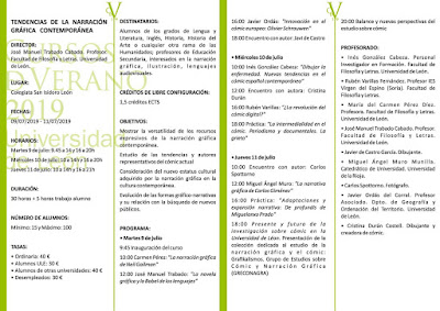Entre el 9 y el 11 de julio la Universidad de León celebró el curso "Tendencias de la narración gráfica contemporánea" en el inmejorable espacio de la Colegiata de San Isidoro. Las jornadas regresaban a León después de seis años sin celebrarse y, como en sus comienzos, al frente de las mismas ha estado nuestro amigo José Manuel Trabado Cabado, profesor de la Facultad de Filosofía y Letras, Director de Publicaciones de la Universidad y fundador del Grupo de Estudios sobre Cómic y Narración Gráfica; del que tenemos la suerte de formar parte.Hemos tenido también la fortuna de participar en estas jornadas con una charla dedicada al cómic digital: "¿La revolución del cómic digital?". Para nuestra ponencia decidimos retomar parcialmente el texto que escribimos para Cómic Digital Hoy; ese espectacular volumen sobre el presente, el pasado y el futuro del cómic digital que ACDCómic editó en 2016 y que se puede descargar de forma gratuita aquí.