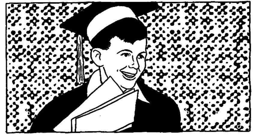 Niño prodigio (cuya edición en nuestro país ha corrido a cargo de Blackie Books) arranca con una fotografía a toda página acompañada de una breve biografía de su autor: “Michael Kupperman, de madre historiadora y padre que hizo historia, parecía abocado a escribir historias. Eso hizo, desde muy joven, en el terreno de las viñetas, tanto en su infancia en Inglaterra como cuando regreso a Estados Unidos.” Luego, se nos informa de que el autor ha trabajado para Marvel y para DC, de que posee un premio Eisner o de que Niño prodigio es su primera obra “seria” (que, entendemos, se refiere a que es su primera “novela gráfica”). Sin embargo, pese a toda la información que completa su biografía, como lectores nos quedamos dando vueltas alrededor del juego de palabras de la primera frase que hemos citado. Esa triple repetición (historiadora-historia-historias) resume el libro que tenemos entre manos y abre la puerta a un misterio: el del hijo, narrador, que se dispone a contar la historia insólita de su progenitor, un “padre que hizo historia”.