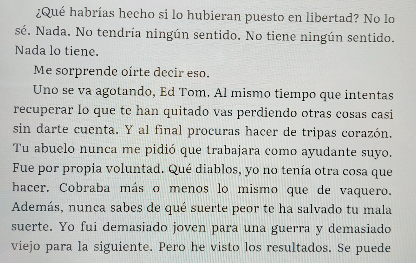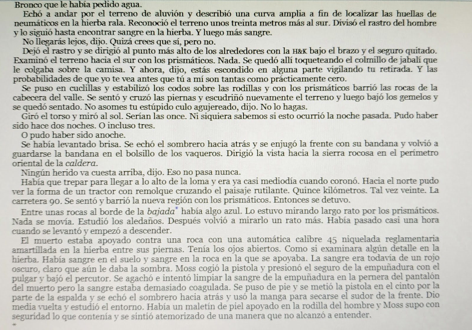 los apartados, para diferenciarlos del resto de prosa— del sheriff Bell que, en