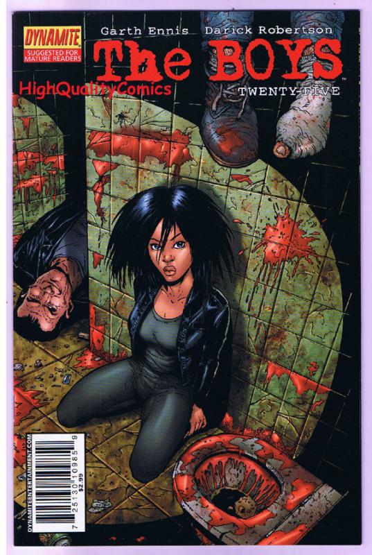 Cuando concibe The Boys, Ennis pretende llevar la ultraviolencia y el espíritu subversivo de Preacher aún un paso más lejos. La elección de Darick Robertson para la parte gráfica incide en aquellas mismas motivaciones underground, potenciando aún más, si cabe, la explicitud sexual y el grafismo encarnizado. Se trata de golpear en el estómago a la industria del entretenimiento de los superhéroes que representaban Marvel o DC, con sus héroes pluscuamperfectos y sus múltiples y desordenadas fecundaciones de supergrupos en mutación constante. No fue una sorpresa que, como ya hemos dicho, DC decidiera cancelar la serie apenas llegada a su sexta entrega. The Boys debe interpretarse como la deconstrucción postmoderna y nihilista de un género desde su parodia más radical y grosera. Los guiones de Ennis no dejan títere con cabeza y casi todas las citas y referencias intertextuales que llenan sus páginas distan de ser sutiles. Casi desde la primera viñeta, reconocemos a personajes que funcionan como el trasunto indisimulado de los grandes mitos del cómic de superhéroes: ahí están Superman, Superwoman, Aquaman, Flash, Batman o el Detective Marciano; aunque en las páginas de The Boys se llamen, con mucha sorna, The Homelander, Queen Maeve, The Deep, A-Train, Black Noir y Jack from Jupiter.