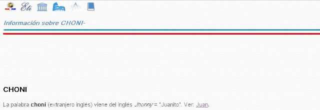 1. 1. En una fase inicial los canarios empleaban la palabra choni como los ingleses emplean Johny como nombre propio. Es algo comparable al ceceo andaluz. Un sevillano, por ejemplo, en vez de decir ‘casa’ pronuncia /káza/ con toda su gracia.