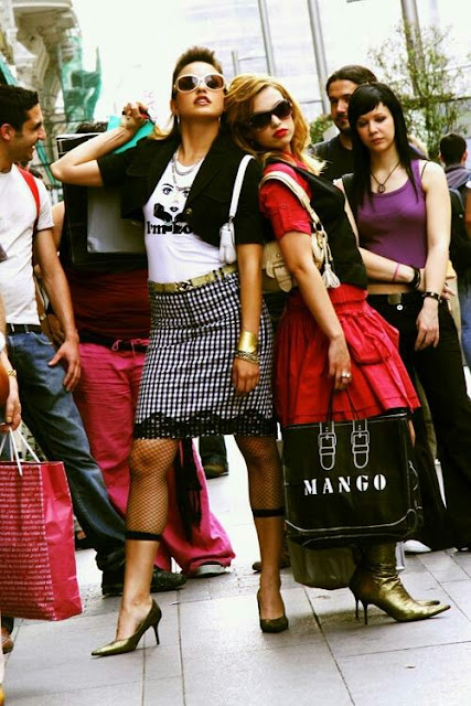 … “La definición de choni es más o menos la de chica a la que le gusta mucho comprar ropa, pero dentro de sus limitados recursos económicos; no sabe combinar colores ni modelos; viste minifalda, minishorts y medias brillantes con botas de plástico; aficionada al botellón, a ir a Bershka, a Stradivarius y a los mercadillos. También se las denomina chungas, payas o poligoneras, y algunas series de televisión están haciendo mucho por fomentar esa tribu: el chicle siempre en la boca y, por supuesto, la boca abierta. Su lenguaje es inimaginable y dicen sin rubor que les gustan las «cocretas» y las «almóndigas», si alguna vez leen es sólo la revista «Sorpresa» y el «¡Qué me dices!», llaman a sus amigos-as con un «la» delante: la Mari, la Jenny, la Vane o la Chusa y los estudios los dejaron sin el Graduado Escolar.