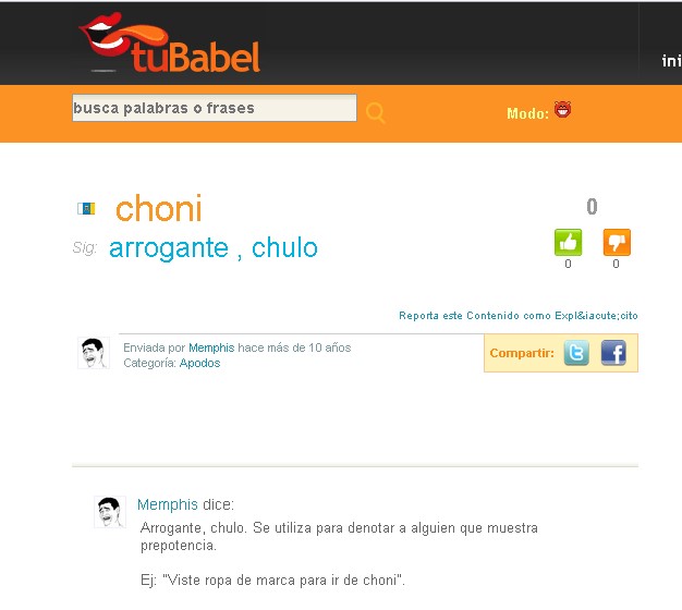 … “La definición de choni es más o menos la de chica a la que le gusta mucho comprar ropa, pero dentro de sus limitados recursos económicos; no sabe combinar colores ni modelos; viste minifalda, minishorts y medias brillantes con botas de plástico; aficionada al botellón, a ir a Bershka, a Stradivarius y a los mercadillos. También se las denomina chungas, payas o poligoneras, y algunas series de televisión están haciendo mucho por fomentar esa tribu: el chicle siempre en la boca y, por supuesto, la boca abierta. Su lenguaje es inimaginable y dicen sin rubor que les gustan las «cocretas» y las «almóndigas», si alguna vez leen es sólo la revista «Sorpresa» y el «¡Qué me dices!», llaman a sus amigos-as con un «la» delante: la Mari, la Jenny, la Vane o la Chusa y los estudios los dejaron sin el Graduado Escolar.