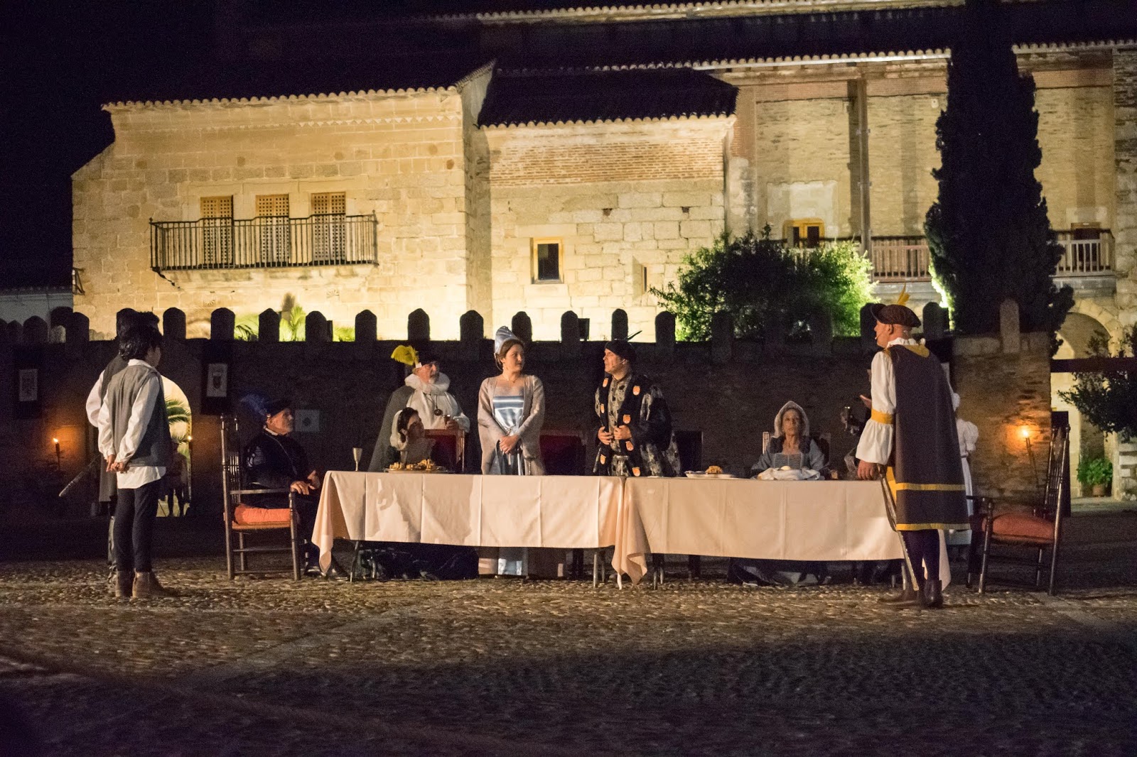 | Adaptación teatral de Calvero don Alonso, escrita por Gregorio Francisco. Representada en la plaza Mayor de Garrovillas (Cáceres), mayo 2019. |