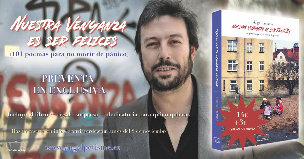 Nuestra venganza es ser felices es una selección de 101 poemas de Ángel Petisme, de entre casi 1800 publicados, que proponen cuidados y consuelos a nuestra salud moral y mental; y rearmarnos en una nueva noche medieval, contra el miedo, la soledad y la ignorancia.