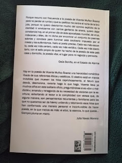 Hoy ha llegado a casa el último libro de poemas de Vicente Muñoz Alvarez, gracias a Canalla Ediciones e Ines Pradilla. Cada nuevo libro de Vicente es una celebración, no sólo por ser uno de los autores con una carrera más sólida y delimitada del panorama literario, sino también por ser un símbolo de resistencia frente al mercadeo editorial en el que estamos sumergidos. Mejor que las mías os dejo las palabras de la contraportada de Gsús Bonilla y Julia Navas.